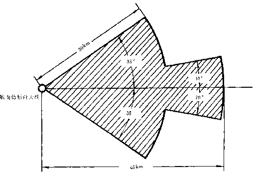 4£®1£®3  º½ÏòÐűę̂Ïò·É»ú׎·½Ïò·¢ÉäË®Öм«»¯µÄÉÈÐκϳɳ¡ÐÍ£¬Æä¸²¸ÇÇøÎª£¬ÒÔº½ÏòÐűę̂´óÏßΪ»ù×¼£¬ÔÚÅܵÀÖÐÐÄÑÓ³¤Ïß¡À10oÒÔÄÚΪ45km£¬ÔÚ10o¡«35oÖ®¼äΪ30km£¨Í¼ 1£©¡£